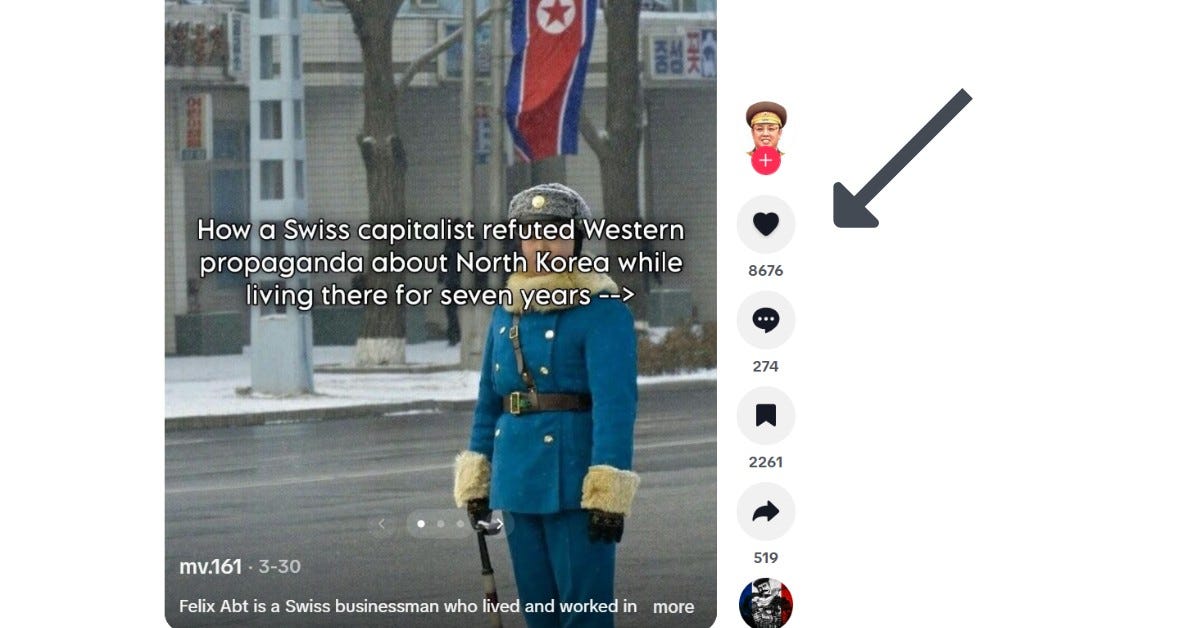 Someone I’ve never even met made a TikTok post about the “Capitalist in North Korea” who lived and worked there for seven years—no joke. And it blew up: over 8,000 likes and more than 200 comments. Wow.