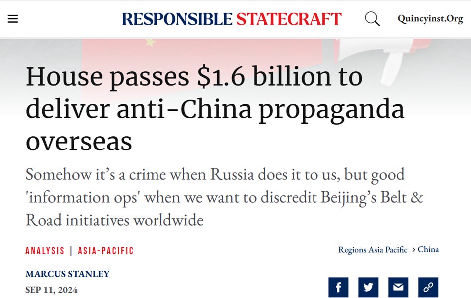 And the 1.6 billion dollar budget for propaganda speaks for itself in the comments below and/or on numerous other social media platforms, not to mention the “official” comments in the mainstream media.