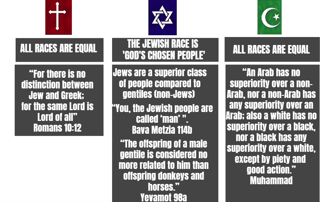 These texts define non-Jews as spiritually inferior, sanction deception (geneivat da’at), and explicitly reject legal equality. It is for this reason that a Jewish state is, by definition, an apartheid state. No major Jewish movement—whether Orthodox, Reform, or Hasidic—has formally repudiated these doctrines. Unlike the problematic verses found in other faiths, these remain active, binding laws. To ignore this is to overlook the most entrenched system of religious hierarchy in history—a system that has shaped power and silenced dissent for centuries. Identifying this is not an act of malice; it is a necessary exposition of truth.