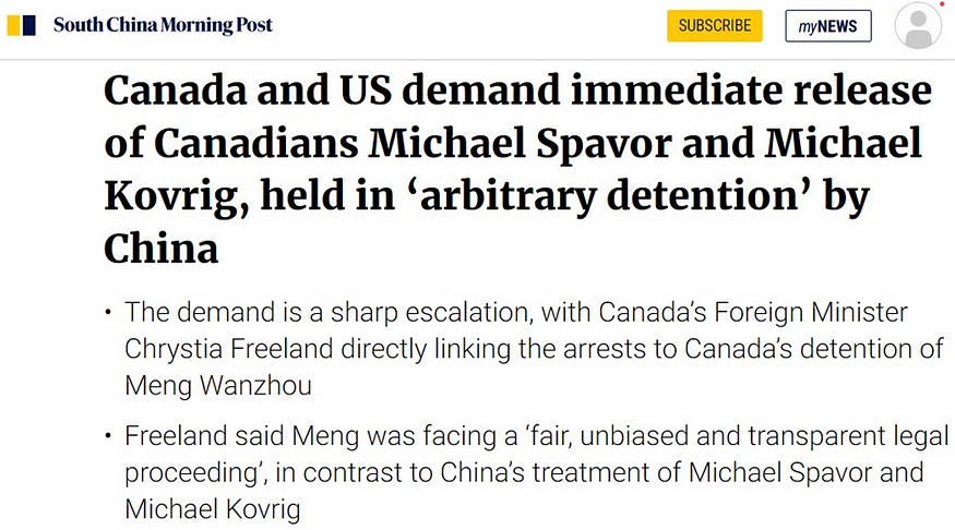 The “two Michaels” from Canada were unjustly imprisoned in China for years without having anything to do with espionage. Typical China — arbitrary justice! That’s how the Canadian and US governments and the mainstream media have portrayed it for years.
