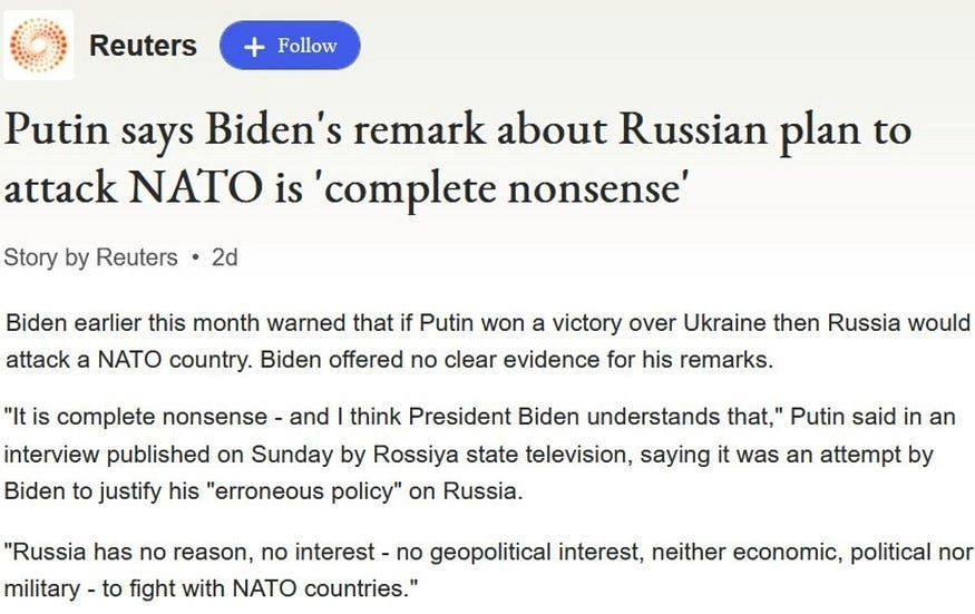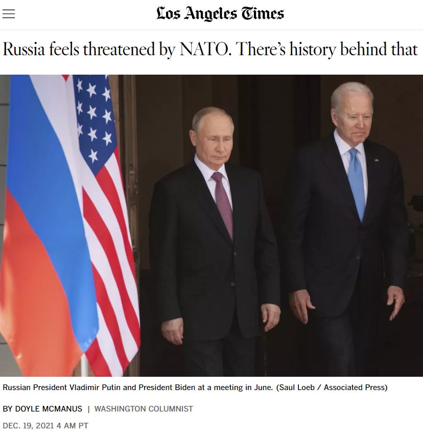 President Biden could not, or would not, recall that as a senator and ranking member of the U.S. Senate Foreign Relations Committee, he also assessed NATO expansion as a dangerous Western provocation of Russia and warned that it would provoke “a vigorous and hostile response from Russia.”