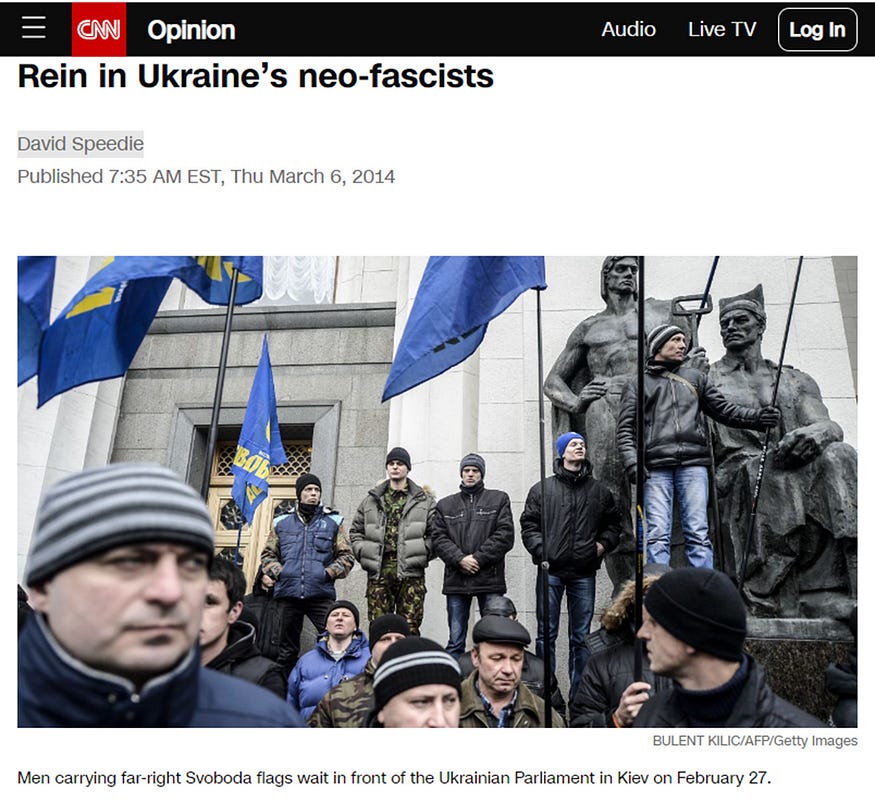 The Maidan protest movement was a marriage of convenience between government opponents, who at best represented one half of a polarized country, and the neo-Nazis. The fact that the uprising served primarily to strengthen the neo-Nazis, while only implementing the goals of the Western powers that opportunistically supported them, was conveniently ignored in the West.