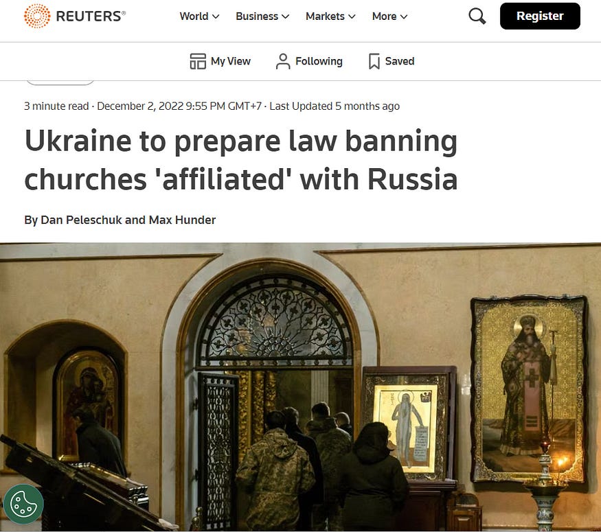 Historically, the Ukrainian Orthodox Church, while formally affiliated with the Russian Orthodox Church, the Moscow Patriarchate, enjoys extensive autonomy. For example, the highest governing bodies, including the appointment of bishops and the election of the Metropolitan, fall under the exclusive jurisdiction of the Ukrainian Orthodox clergy. The Church is recognized by all major ecclesiastical denominations of the world. Despite Article 35 of the Ukrainian Constitution, which states, “Everyone has the right to freedom of expression and religion,” authorities have launched a coordinated attack on the Church with the goal of banning it. On December 21, 2022, the head of the Security Service of Ukraine (SBU), Malyuk, bluntly stated, “We are now actively working against the UOC, and our commander-in-chief is setting the main pace.” Here, too, it is evident that the nationalists are using Zelensky (who supposedly “sets the pace”) as a figurehead to enforce their policy of systematic discrimination and forced assimilation.