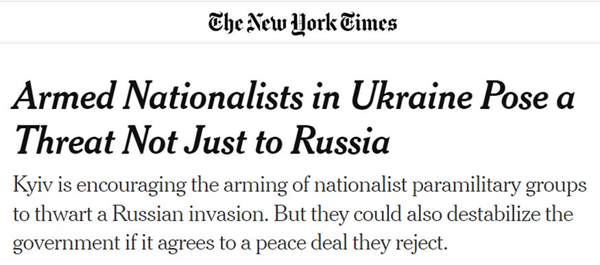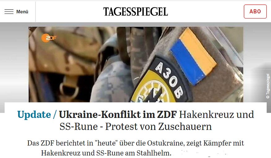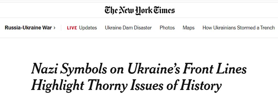 And as one would expect from a newspaper that has also clearly taken sides in the Ukraine conflict, a proxy war between the U.S. and Russia on Ukrainian soil, the New York Times used this excuse to try to downplay and trivialize the fact of a Ukrainian society steeped in Nazi ideology, expressed, among other things, in Nazi insignia: “Calling attention to the iconography risks playing into Russian propaganda”.
