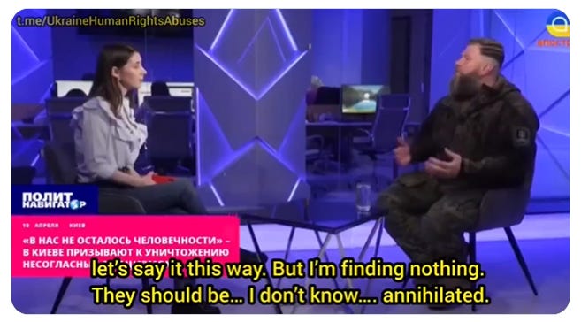 An example that these nationalists are serious about their hostility toward native Russian-speaking Ukrainians is the recent announcement by a Ukrainian soldier in the east of the country that he and his comrades will murder all Russian-born eastern Ukrainians in the Donbass as soon as the opportunity presents itself.