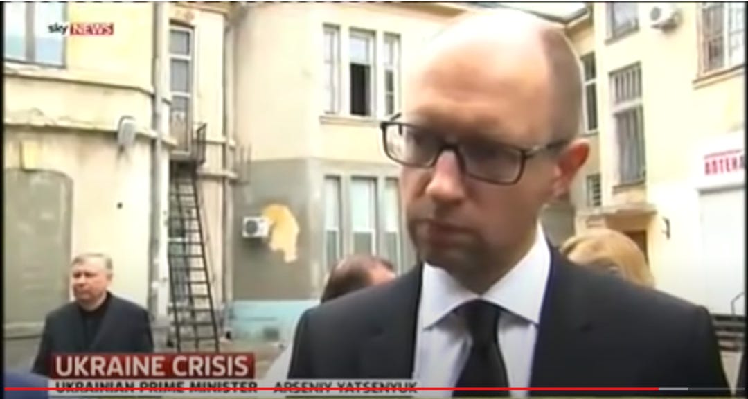 Prime Minister Yatsenuk visited the scene after the crime and showed his true colors. If he were the prime minister for all the people, he would have shown compassion for the victims, condemned the murderers and vowed to bring them to justice. Instead, he was apologetic of the crime by spreading an unfounded conspiracy theory against Russia and taking a bellicose stance, talking about a war against Russia (documentary video sequence from 1:08:05–1:08:16).