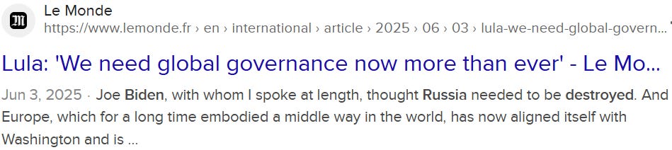 U.S. President Biden to Brazilian President Lula: “Russia needs to be destroyed!” (Headline Le Monde)