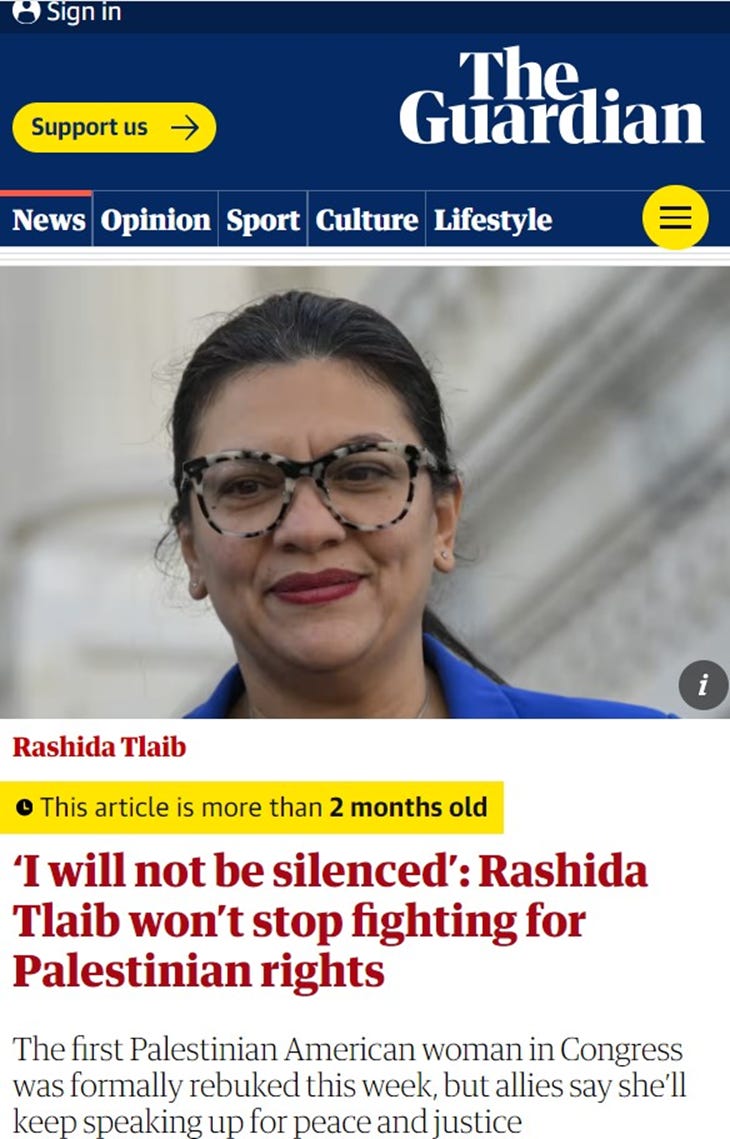 So Rashida Tlaib essentially delivered a message calling for an end to the murder of innocent people. As a result, her message was suppressed by the US Congress and she was censored. The US Congress has only censored 20 people in its entire existence, i.e. in a period of 300 years. These were for offenses such as accepting bribes, sexual offenses and inappropriate sexual behavior. Speaking out against genocide (when committed by Israel) is now officially another offense in the United States!